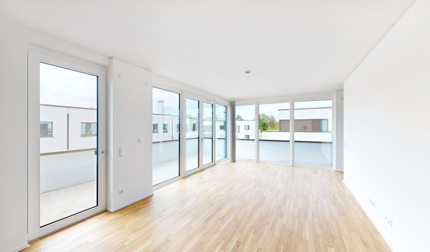 Den zukünftigen Bewohnern stehen dabei verschiedene Grundrisse in den vier verschiedenen Häusertypen zur Auswahl. Darunter befinden sich funktionale Apartments, großzügig geschnittene Wohnungen in den Stadtvillen und Maisonettehäusern sowie Reihenhäuser. Von 2 bis 5 Zimmern und Größen von ca. 48 m² bis 153 m² bieten die Einheiten für jedes Lebensmodell ein Zuhause. Jede Wohnung verfügt über einen schönen Balkon oder Terrasse. Die durchdachte Anordnung der Räume ermöglicht eine optimale Nutzung des Wohnraums, wobei offene Küchen harmonisch in die Wohnbereiche integriert sind. Durchdachte Stauraumlösungen, hochwertige Materialien und moderne Ausstattungsdetails runden das Gesamtbild ab.