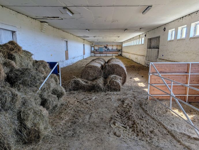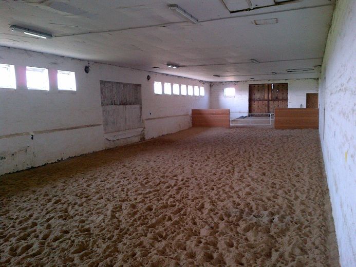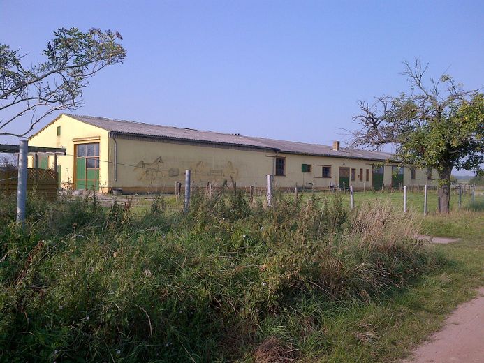 Verkauft wird ein Pferdestall (64 x 18 m) mit einer Fläche von 1.150m² mit zwei angrenzenden Koppeln. Es gibt eine Reithalle (40 x 11 m), einen Laufstall (24 x 11 m), einen Aufenthaltsraum, eine Sattelkammer sowie eine Maschinenhalle.