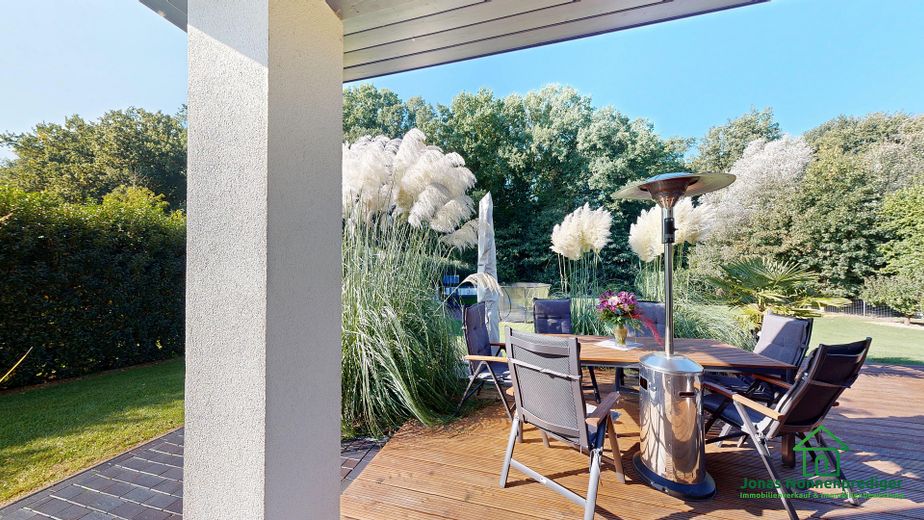 Die Immobilie überzeugt durch eine Vielzahl an Extras: ein Tunnelkamin sorgt für behagliche Wärme sowie elegante Optik, während eine 22 kWp Photovoltaikanlage einen nachhaltigen Energiebeitrag leistet. Eine moderne Einbauküche, eine Wasserenthärtungsanlage sowie elektrische Außenrollos ergänzen die hochwertige Ausstattung. Für zusätzlichen Komfort sorgt ein Whirlpool. Beheizt wird das Haus über eine energieeffiziente Weishaupt-Wärmepumpe mit Fußbodenheizung. Für Kinder steht ein schöner Spielplatz im Garten zur Verfügung.
