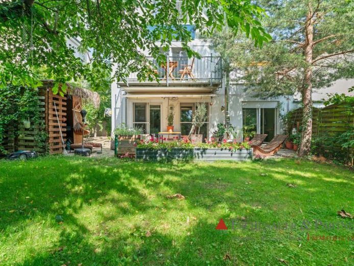 Herzstück der Immobilie ist das rückwärtig angebaute Einfamilienhaus mit seinem traumhaften, uneinsehbaren Garten. Vom hellen Wohnzimmer aus gelangen Sie direkt auf die Terrasse und in das grüne Paradies, das Kindern einen geschützten Spielraum und Erwachsenen eine Oase der Ruhe bietet. Ein Kaminanschluss im Wohnbereich ermöglicht zusätzlich behagliche Abende. Das Schlafzimmer verfügt über einen Balkon, von dem aus man den Blick ins Grüne genießen kann – ein Rückzugsort mit besonderem Charme.