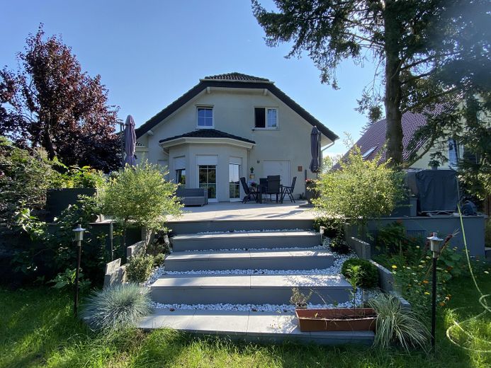 - Große Terrasse (2021 erweitert) mit Zugang zum Garten