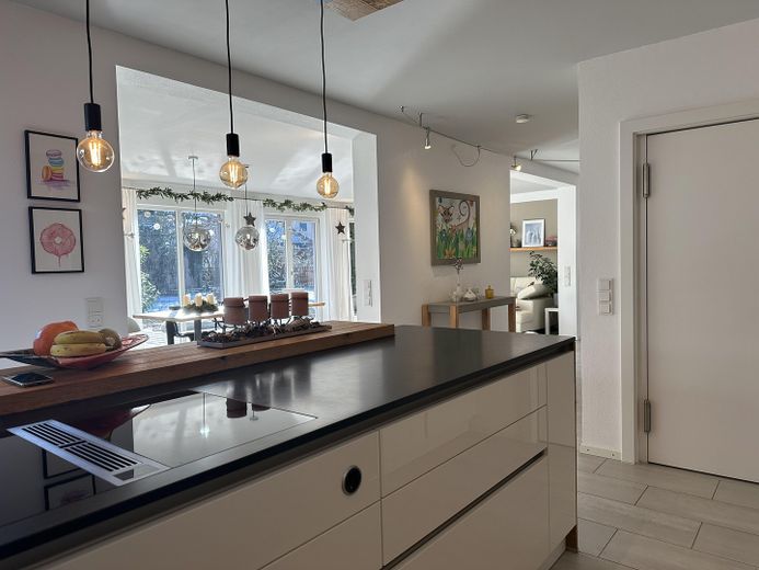 Die hochwertige Einbauküche inkl. Elektrogeräten von BORA, SIEMENS und Quooker und die Einrichtung der geräumigen Speisekammer sind im Kaufpreis enthalten.