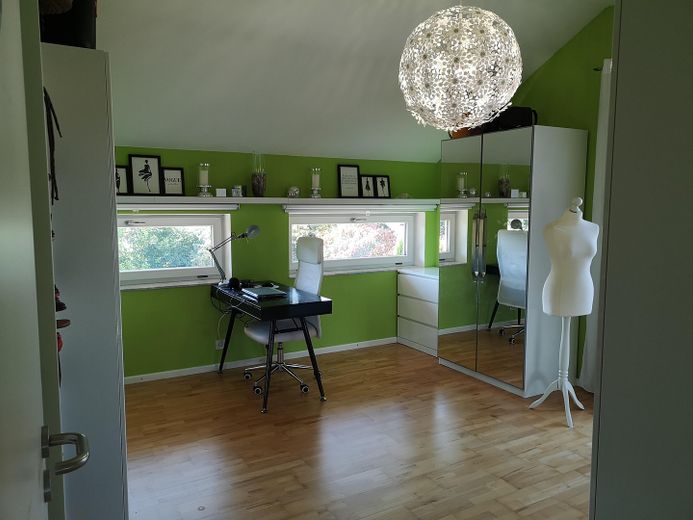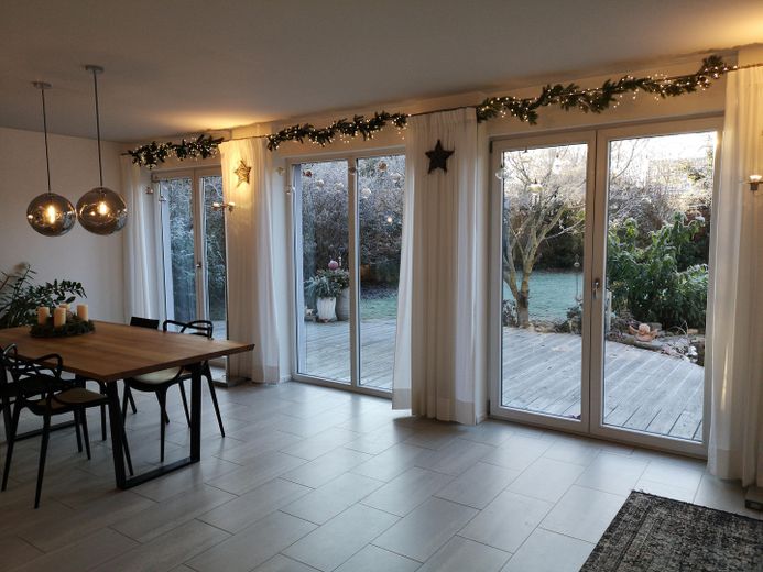 - Fußbodenheizung im gesamten Haus, teilweise auch im Keller (Büro, Flur, HWR)