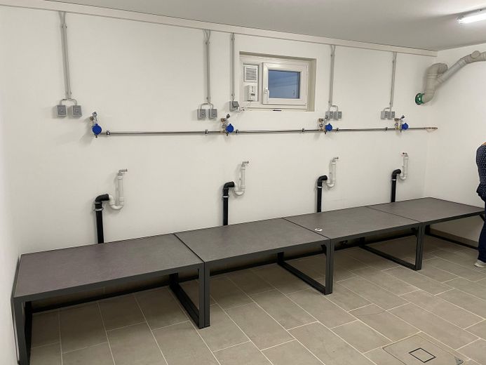 - Großer Gemeinschaftswaschraum mit der Möglichkeit zur erhöhten Aufstellung von Waschmaschiene und Trockner