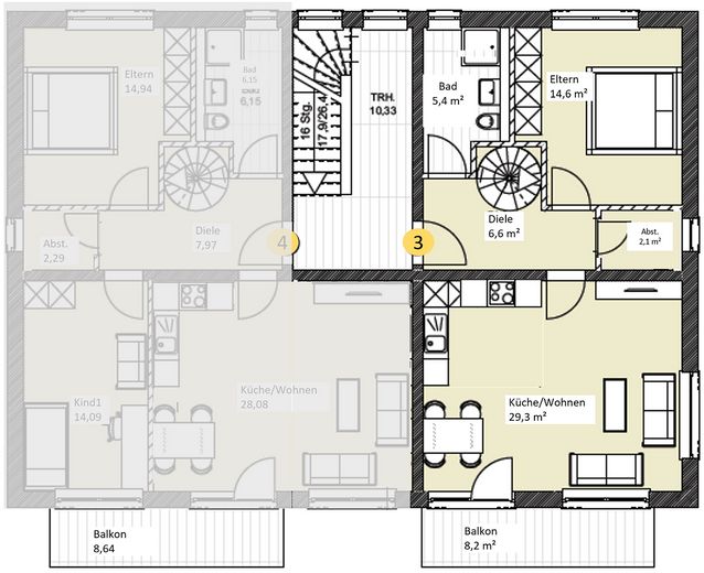 Ruhige exklusive 3-Zimmer-Maisonette Wohnung