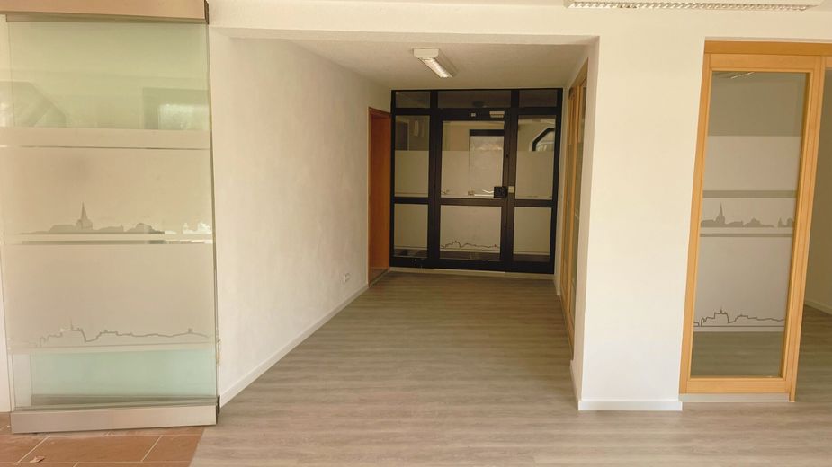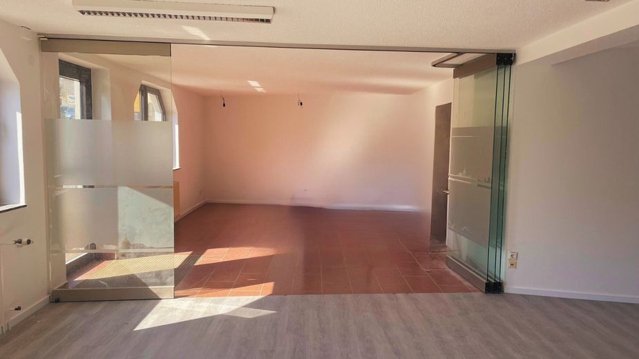 Der großer Empfangs-oder Verkaufsbereich ist durch eine Glastrennwand teilbar.