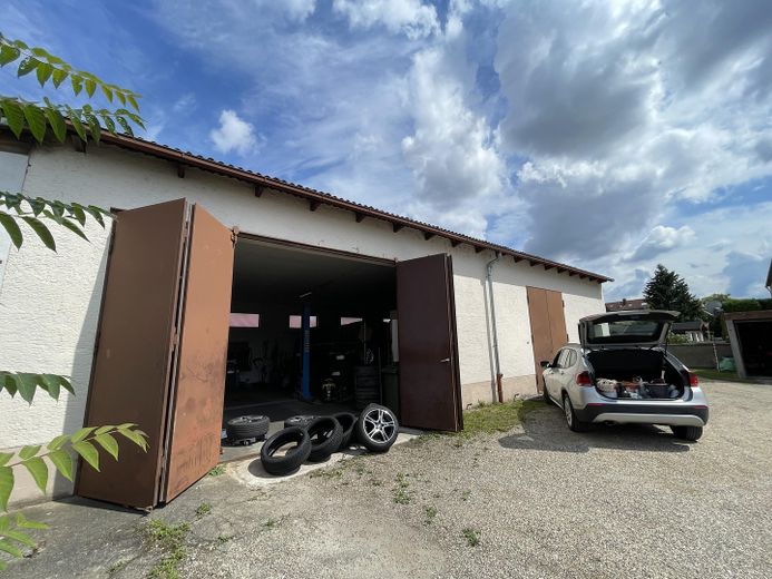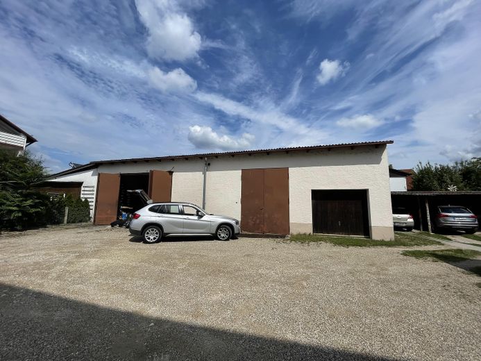 Die Halle befindet sich im Wohn- / Mischgebiet in Barbing. Die große Einfahrt wird mit einem Mehrfamilienhaus geteilt.