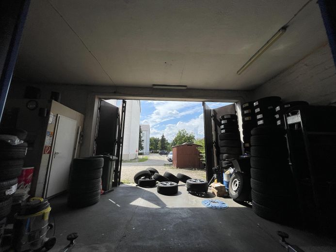 Die 180 qm große Halle ist über 2 große doppelflüglige Tore zugänglich, ist teilunterkellert und mit WC, Pissoir und Waschbecken ausgestattet. Bei Bedarf können ebenfalls 2 große Außenstellplätze verwendet werden. Im Hof ist nur Be-/ und Entladen möglich und es darf nicht geparkt werden. Es können z.B. Waren gelagert werden oder Autos. Auch als Werkstatt eignete sich die Halle sehr gut. Die Arbeiten dürfen dauerhaft nicht zu laut sein, da der Standort mitten im Wohn-/ Mischgebiet ist.