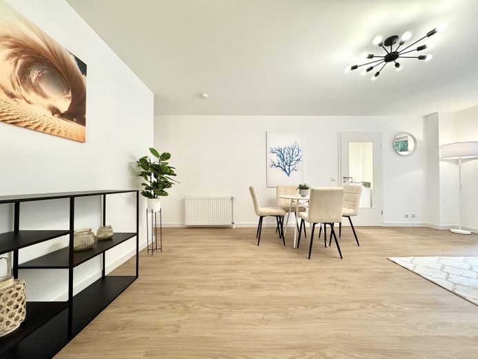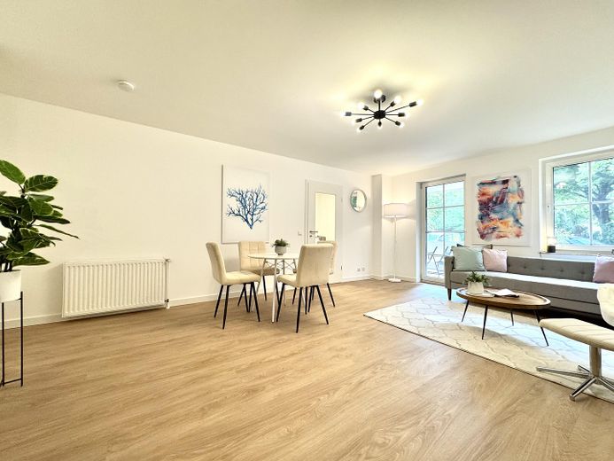 Diese vollständig sanierte Erdgeschosswohnung überzeugt durch durchdachte Raumaufteilung und hochwertige Ausstattung. Der lichtdurchflutete Wohn- und Essbereich bildet das Herzstück der Wohnung und geht fließend in die separate Küche über. Von beiden Räumen gelangen Sie direkt auf die großzügige Terrasse – perfekt für entspannte Morgenstunden mit Ostseeluft.