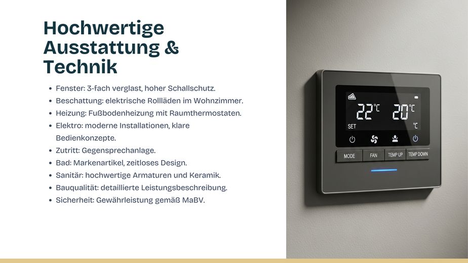 - Fußbodenheizung mit Raumthermostaten für angenehme Wärme