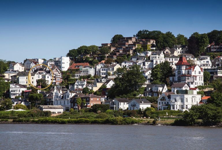 Die phantastischen Blickachsen auf die launische Elbe, deren wechselnde Farben und Lichtspiele jede Stunde anders wirken lassen, schaffen eine unvergleichliche Wohnatmosphäre. Herrliche Parks, der direkte Bezug zum Wasser und Strand sowie eine exklusive Nachbarschaft zeichnen diese Lage zusätzlich aus.