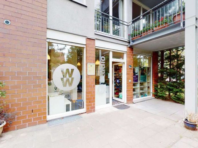Diese Wohneinheit im Erdgeschoss eines 12-Parteienhauses hat eine durchgängige Fensterfront zur Straßenseite.