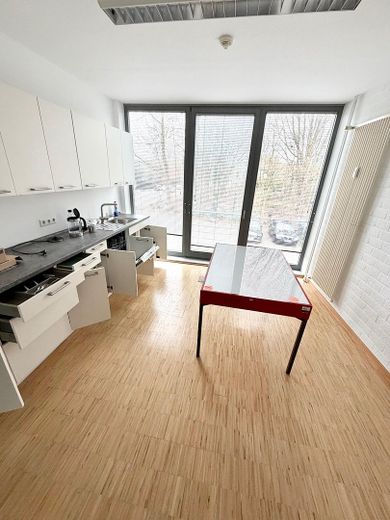 Betreten Sie das Gebäude durch den attraktiven Empfang und einer Gemeinschaftsfläche von über 100qm zu Ihrer abgeschlossenen Bürofläche. Ihre Einheit teilt sich auf in 7 Büros, einem Gemeinschaftsraum mit Küche und den beiden getrennten WCs. Der Flur und Allgemeinbereich ist mit Parkett ausgestattet, die Büros derzeit mit Teppichboden.