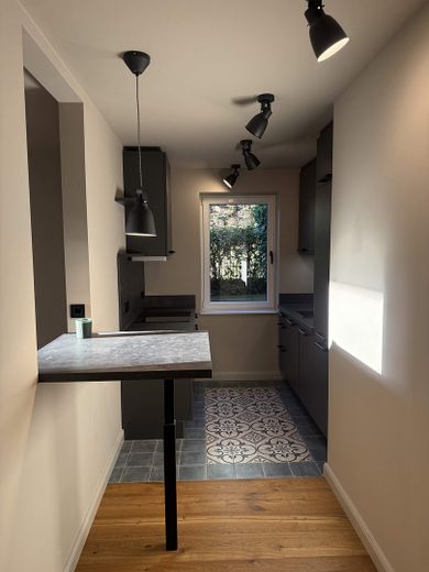 Die Wohnung wurde 2023 vollständig erneuert: Elektrik, Sanitär, Oberflächen – alles wurde mit ruhiger Hand geplant und umgesetzt. Schon beim Betreten wirkt die Gestaltung wie aus einem Guss. Trotz der kompakten Fläche wurde an praktische Details gedacht: Im Flur befindet sich eine integrierte Garderobenische, zusätzlich gibt es einen kleinen Abstellraum in dem Teile der Haustechnik versteckt sind.