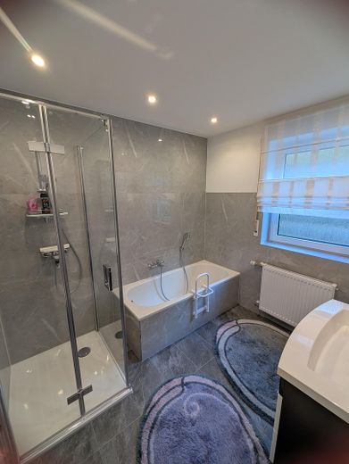 Das Badezimmer wurde vor zwei Jahren komplett modernisiert und verfügt über hochwertige Fliesen, eine Dusche, eine Badewanne sowie moderne Sanitäranlagen. Die neuen Badezimmermöbel sind ebenfalls im Kaufpreis enthalten.