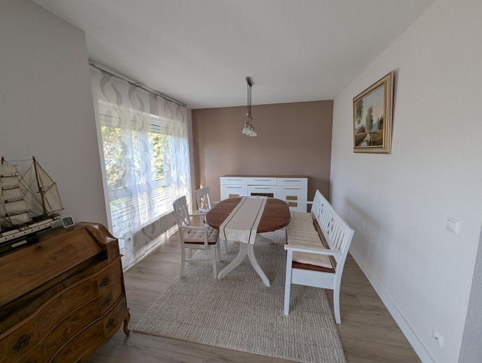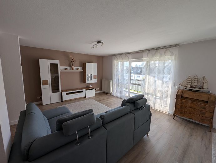In einem gepflegten Mehrfamilienhaus befindet sich diese großzügige, barrierearm zugängliche und praktisch geschnittene 4-Zimmer-Erdgeschosswohnung mit einer Wohnfläche von 106 m². Schon beim Eintreten wird die großzügige, lichtdurchflutete Architektur deutlich erkennbar. Der Flur geht direkt in den offenen Wohnbereich über, von dem aus der Balkon betreten werden kann. Dieser bietet einen herrlichen Ausblick über Bad Ems. Eine Metalltreppe führt vom Balkon direkt in den eigenen kleinen Garten.