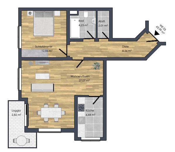 • Wohnfläche ca.: 64 m²