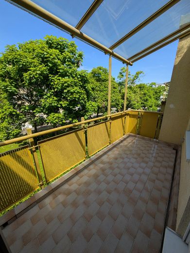 • Wohnzimmer mit Westbalkon (Glasdach & Markise)