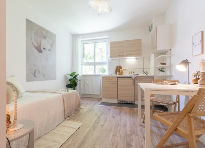 Das Apartment ist frei zur Vermietung. Küche, Bett und Schreibtisch vorhanden. Kann problemlos für 375€ Kalt vermietet werden.