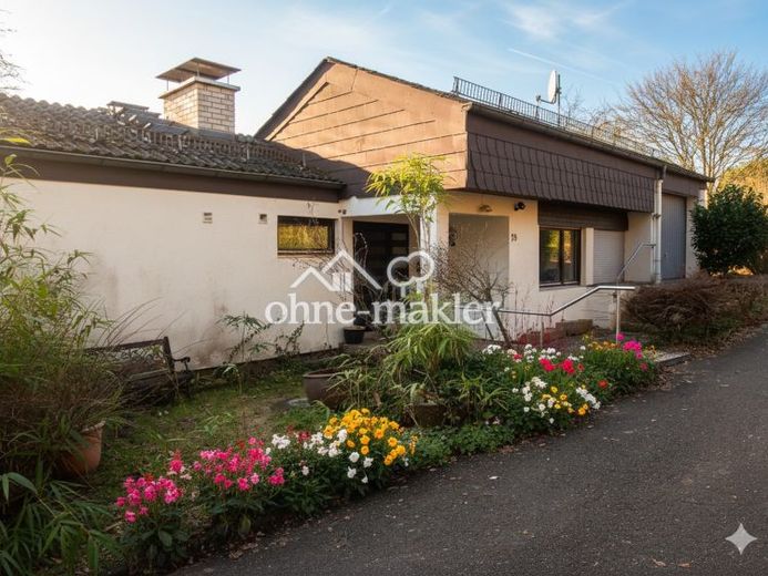 Dieses im Jahr 1970 erbaute Architektenhaus ist ein echtes Unikat für Individualisten. Das Gebäude wurde in massiver Bauweise stufenförmig in den Hang gebaut, was eine spannende Split-Level-Architektur über mehrere Halbebenen ermöglicht. Dank der konsequenten Südausrichtung und der großflächigen Fensterfronten im Wohn- und Lebensbereich ist das Haus außergewöhnlich lichtdurchflutet.