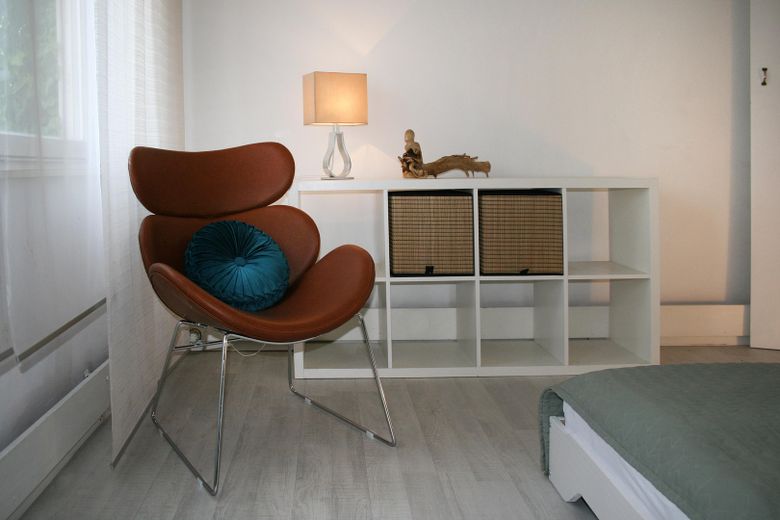 Das schöne mit wildem Wein bewachsene Landhaus von 1890 verfügt über 2 Wohneinheiten. Im Erdgeschoss befindet sich diese kleine Einliegerwohnung, das Refugium mit 2 Zimmern. Es wurde von der großen Wohneinheit abgetrennt und hat einen separaten Eingang. Mit einer kleinen Küchenzeile im Eingangsbereich, einem kleinen Duschbad und Schlafmöglichkeiten für maximal 3 Personen ist es eine zweckmäßig ausgestattete Unterkunft für preisbewusste Gäste. Ideal für Geschäftsreisende und Porsche-Praktikanten.