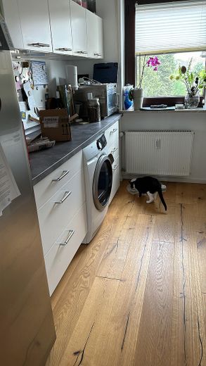 In der gesamten Wohnung wurde Eiche Echtholzparkett, geölt, verlegt.