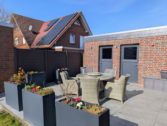 Nur wenige Schritte vom Nordseestrand entfernt erwartet Sie dieser hochwertige, altersgerecht errichtete Bungalow in massiver Bauweise, Baujahr 2020, im beliebten Ferienort Bensersiel.