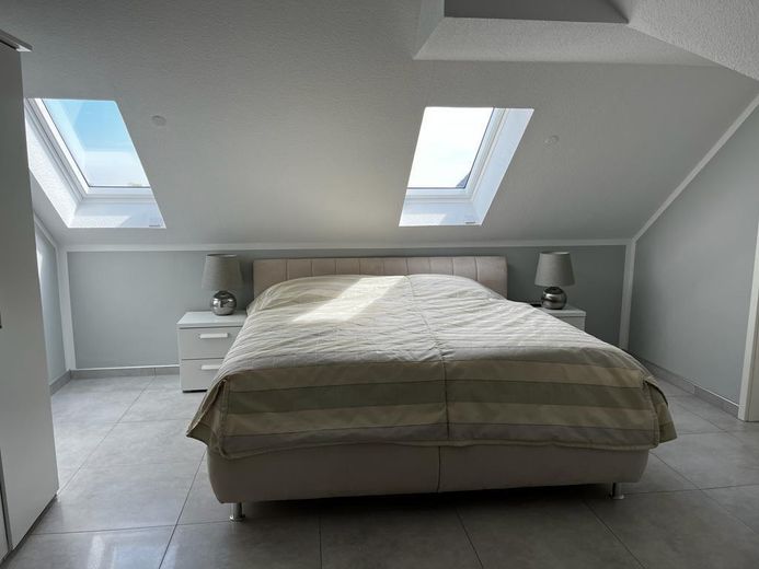 Der durchdachte Grundriss bietet drei komfortable Schlafzimmer, ein separates Arbeitszimmer sowie ein kleines Spielzimmer – ideal für Familien sowie Mehrgenerationswohnen. Im Erdgeschoss befindet sich ein großzügiges Wohnzimmer, das durch seine Offenheit und Helligkeit überzeugt.